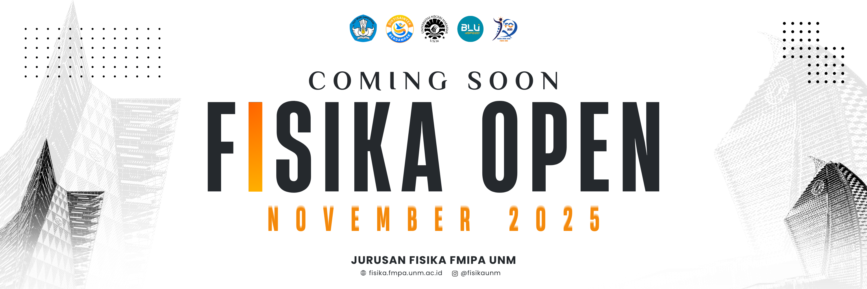 Selamat datang di Jurusan Fisika Universitas Negeri Makassar. Jurusan fisika memiliki dua program studi sebagai pusat pendidikan, pengkajian, dan pengembangan ilmu pengetahuan, sains, dan teknologi yang berwawasan kependidikan dan kewirausahaan. Kami berkomitmen menyelenggarakan pendidikan yang berkualitas guna menghasilkan generasi yang bertakwa kepada Tuhan Yang Maha Esa, Unggul dan Berdaya saing global.